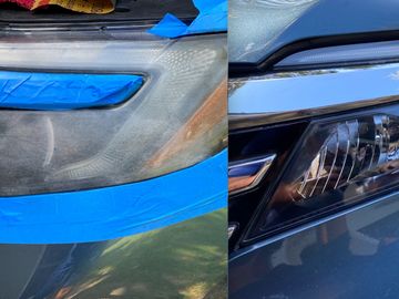 The headlight oxidation is removed using an extensive process involving wet sanding, and machine compounding and polishing. It is then sealed with a ceramic coating to restore and protect the lens resulting in a semi-permanent fix guaranteed for 2 years.